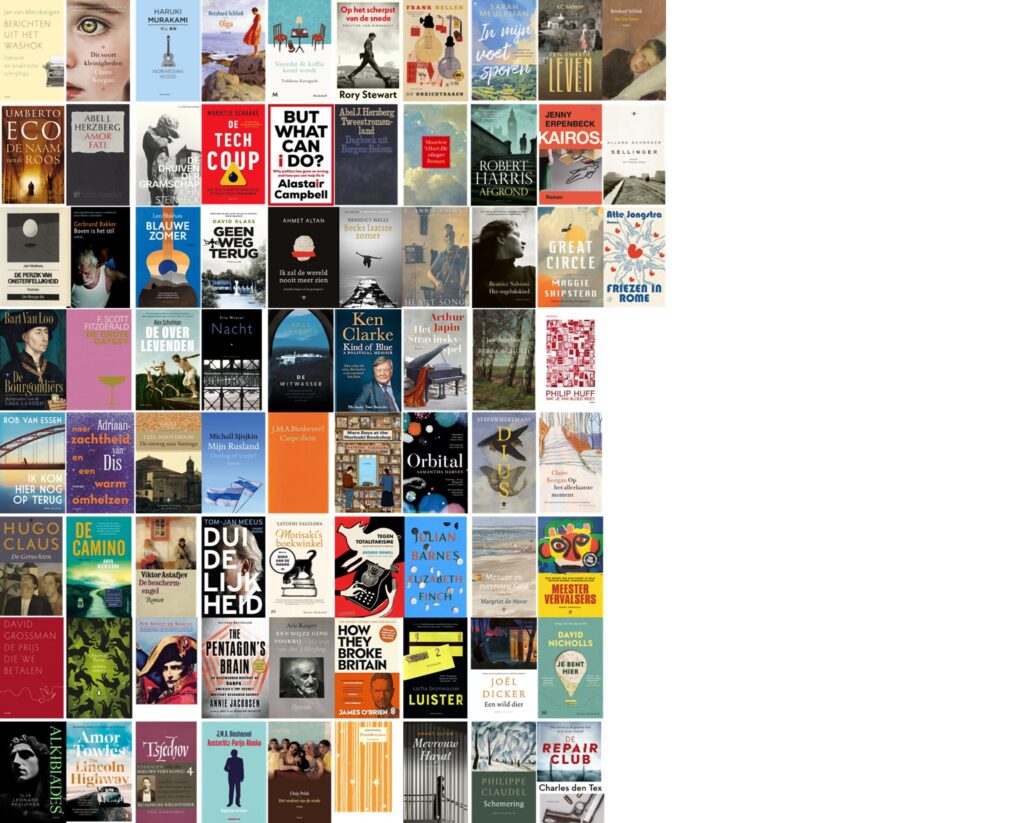 Tot slot een overzicht van al de omslagen van de 75 boeken die ik het afgelopen jaar heb gelezen.